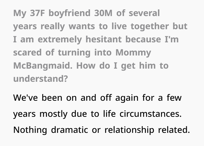 You’re in a really solid place with your boyfriend of several years (37F you / 30M him). You say things are serious and strong: he supports your career, your solo travel, your friendships. But when he brings up living together, you audibly cringe. And the reason is totally valid: you worry that because he’s never really lived on his own and his cleaning habits (or lack thereof) raise red flags, you’ll end up in the roommate/maid hybrid role you absolutely don’t want.