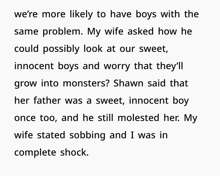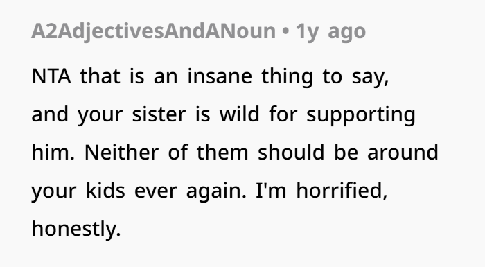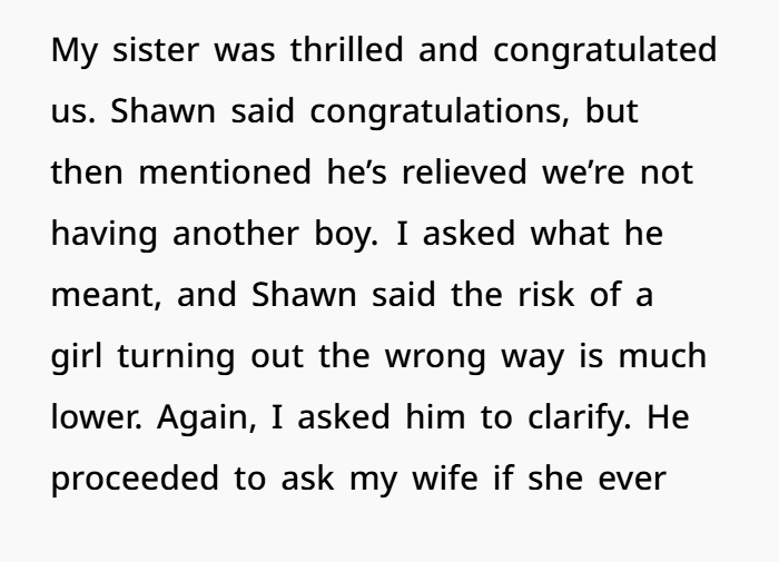 A man shared how his brother-in-law made shocking remarks about his young sons, leaving his pregnant wife deeply distressed