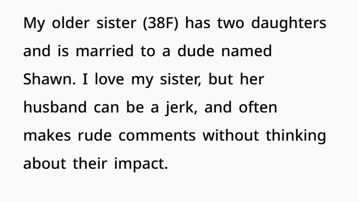 - Your sister and her daughters are collateral damage — because the BIL’s presence affects them, and they may feel punished for his actions.