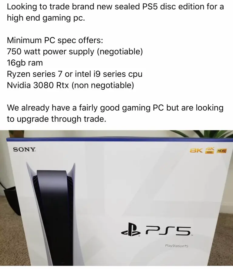#15 Yea let’s just go ahead and trade a $2,000 PC for a PS5.