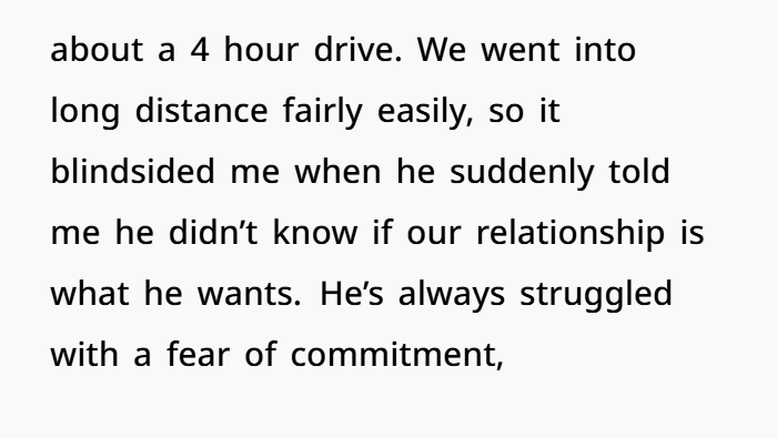 Experts in relationship psychology say that commitment phobia or fear of long-term commitment can be behind this. And guess what? That lines up exactly with what you’re describing. Your boyfriend has told you multiple times that he’s afraid of commitment. That’s a big keyword right there: fear of commitment.