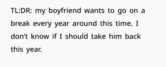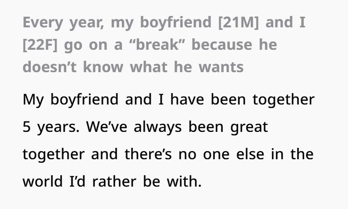 Let’s talk about it. Like, really talk. Because if your boyfriend is asking for a “break” like it’s a seasonal flu shot—every single year—you’re not just in a relationship. You’re stuck in a cycle.