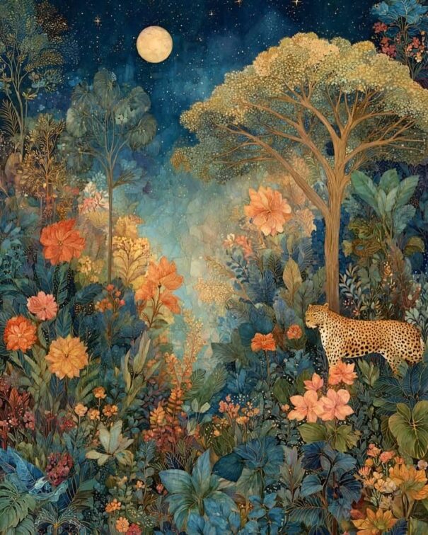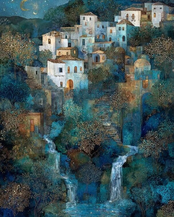 He’s drawn to themes like starlit nights, serene mountains, and quiet cityscapes, all designed to make you feel a mix of nostalgia and hope. There’s something so comforting about his AI digital paintings — like they whisper, “slow down, breathe, and just be.”