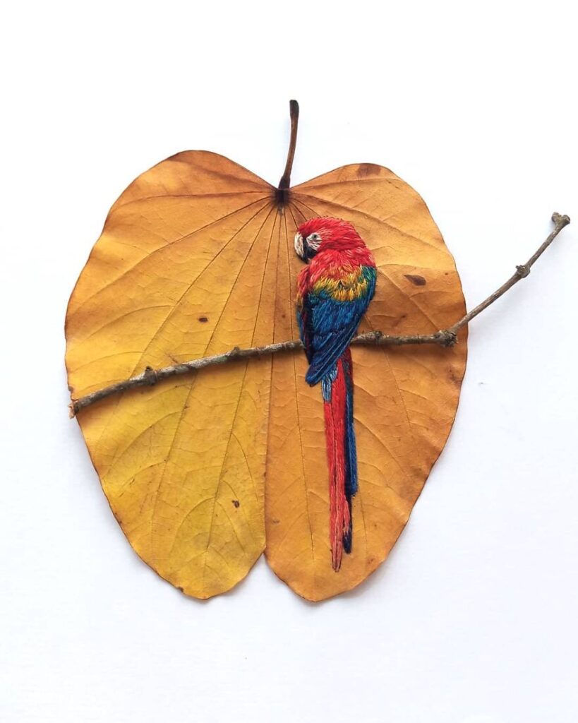 This Artist Turns Dry Leaves Into Stunning Bird Embroidery — 20 Magical Creations You’ve Gotta See