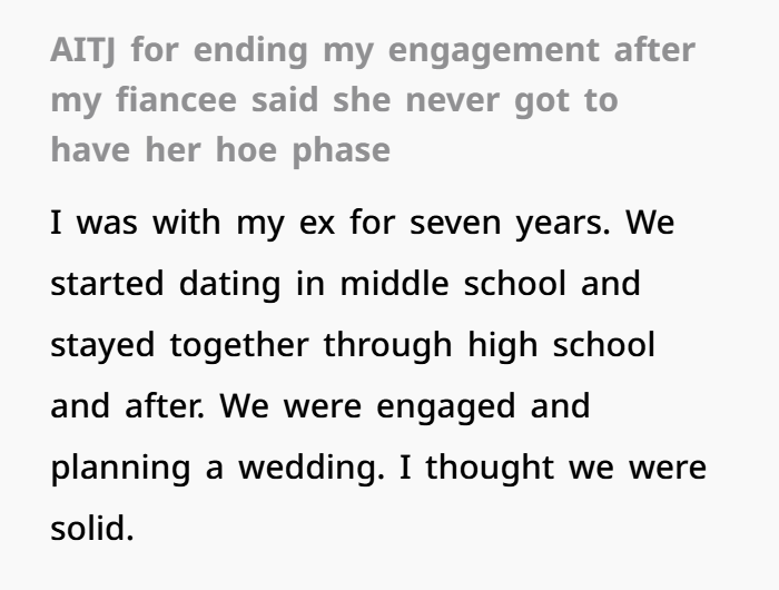I Ended My Engagement After She Wanted a “Hoe Phase” — Did I Stay Too Long?