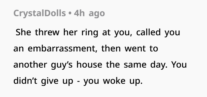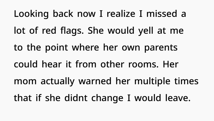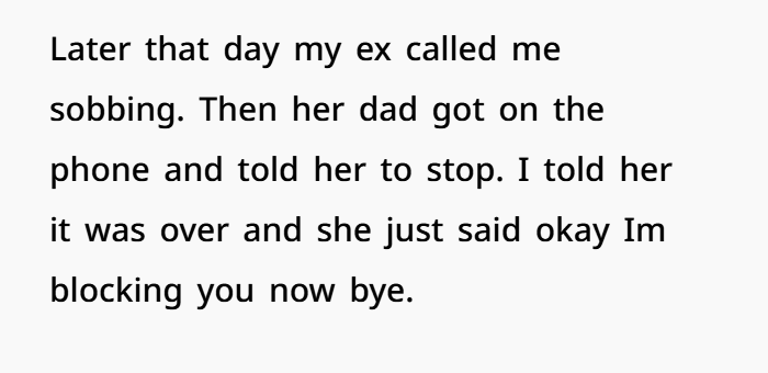 What hits harder is her parents’ response—especially her mom. When even her own family sees the issue and expects the relationship to fail, that’s a big deal. It means the behavior wasn’t hidden. It was obvious. Repeated. Serious. That kind of outside perspective matters a lot in relationship psychology. It confirms that this wasn’t just your feelings—it was reality.