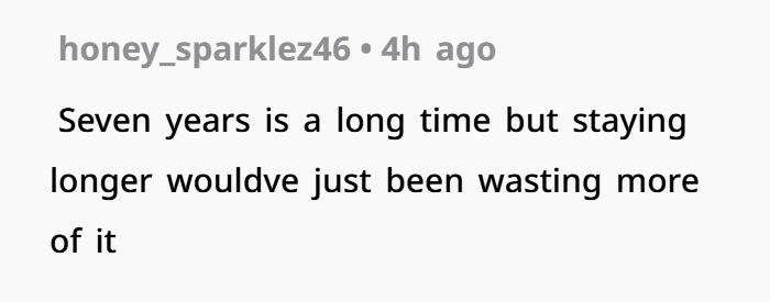 But relationships aren’t something you’re forced to keep just because of time invested. Especially when they’re draining you. Leaving wasn’t a rushed decision. It was years of buildup finally reaching a breaking point. Sometimes clarity doesn’t come slowly—it hits all at once.