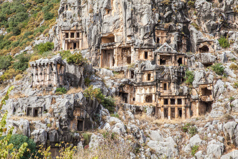 Ancient Tombs Carved Into Natural Rock Formations in Turkey