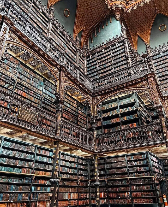 The Portuguese Royal Library is pure book lover heaven. Floor-to-ceiling shelves. Endless books. Zero empty space. Founded in 1837 and opened to the public in 1900. Emperor Pedro II laid the first stone himself. Reading every book here would probably take a lifetime.