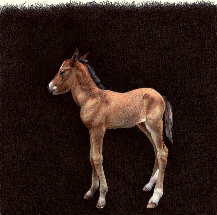 #6 Nicolas V. Sanchez, “First Gen” (2024), colour ballpoint pen on paper in wood frame, 8 x 8 inches