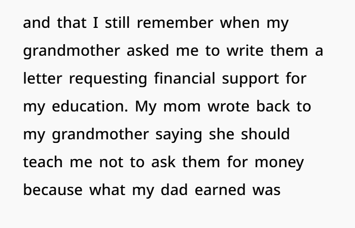 What makes this even worse? When her grandmother asked for financial help from her parents for education, her mother’s reply was: “Teach her not to ask us for money.” That’s not parenting. That’s rejection. And that decision back then—no matter how long ago it was—has consequences today.