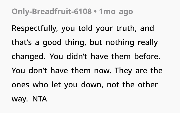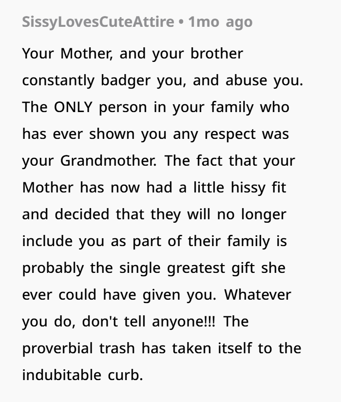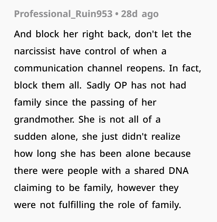 Netizens applauded the poster for standing up for herself and claimed that her family going no-contact was actually a good riddance