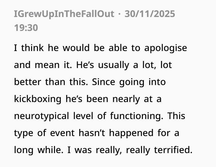 When people downplay real harm because the person who caused it is neurodivergent, they’re missing a huge piece of the puzzle. Safety matters. For you, for him, for everyone.