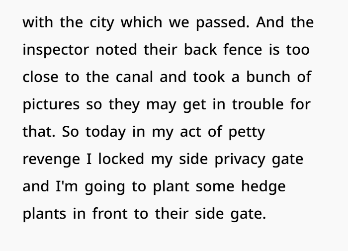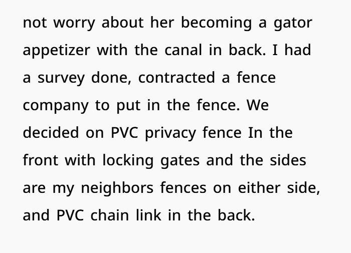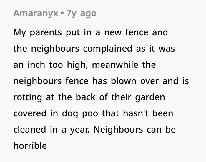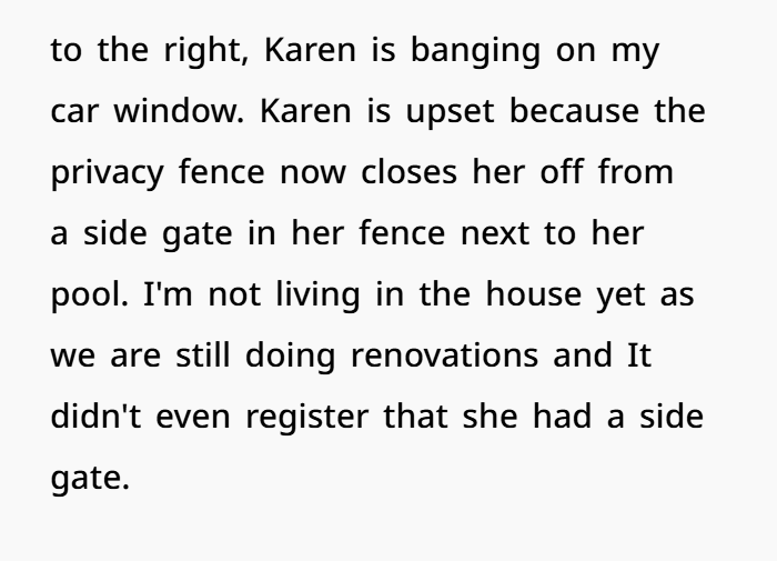 So nope — petty? Maybe a little. But petty with purpose. The fence isn’t just wood and posts — it’s your right to say: “This is my land. That’s their pool. They don’t get a shortcut through my yard.”