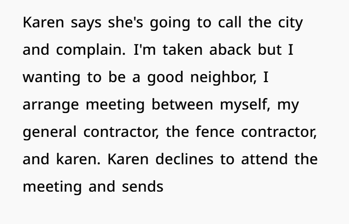 - They might threaten city complaints, building‑code or easement lawsuits. But since your fence passed inspection and is properly placed — you already have the upper hand.