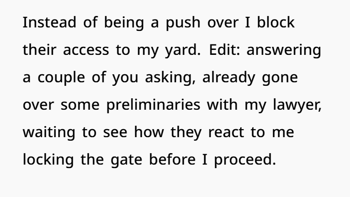 Blocking a gate they used informally — when they never had a legal right of access — isn’t spite. It’s rightful enforcement.