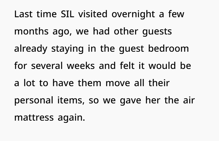 Pregnant Sister-in-Law Loses It After Getting an Air Mattress, Demands Couple’s Bedroom Instead