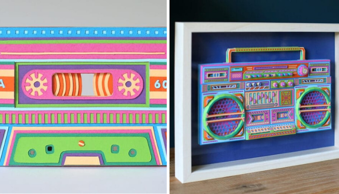 Colorful Retro Paper Boombox and Cassette Art by Zim&Zou – Vintage Design That Grabs Attention