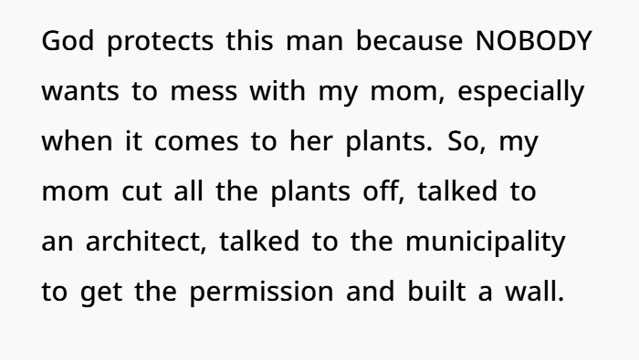 Most people in the comments only praised the author’s mom for her inventiveness, composure and wit, claiming that the neighbor actually got what he deserved