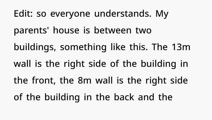 The author of the post has a mom who’s an agro engineer by trade and lives in a one of two houses sandwiched between two huge buildings