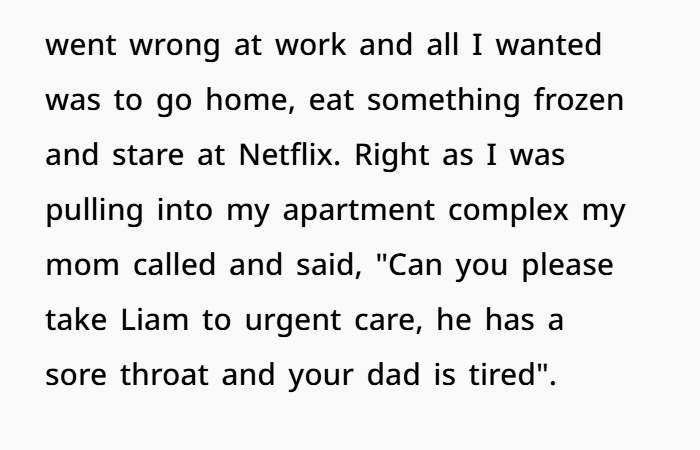In the comments, readers all agreed that the woman was not the jerk in the whole mess and slammed her parents for being such slackers when it came to helping out