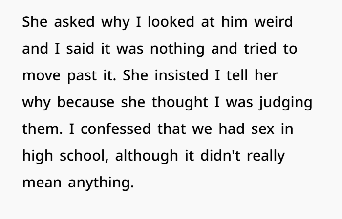 Let’s be honest—confessing at dinner, in front of mutual friends, that you had sex with your sister’s boyfriend in high school isn’t exactly subtle. But context matters. The sister asked OP to explain her reaction. And OP tried to brush it off before finally speaking the truth.