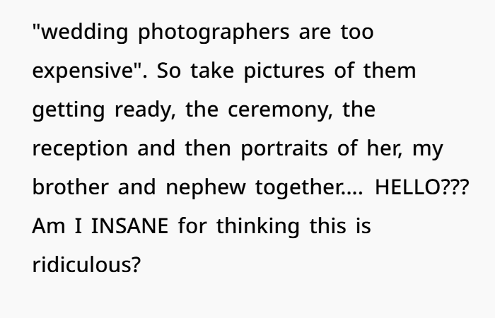Flying Cross-Country for My Brother’s Wedding, Now They Want Me to Be the Photographer—AITA?