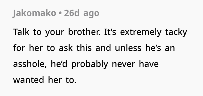 Netizens insisted that the issue shouldn’t even be handled solely with the sister-in-law, and urged the author to talk directly to her brother