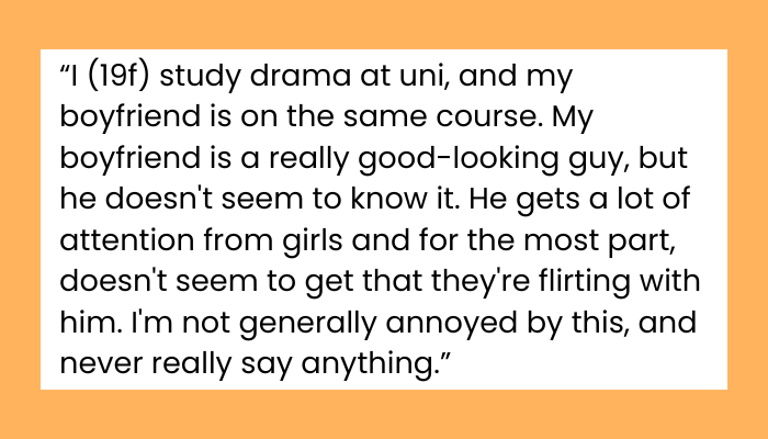 This one kicks off pretty normal—nothing dramatic at first. A 19-year-old drama student is dating a guy from her course. He’s good-looking, gets attention, but doesn’t really entertain it. Their relationship feels stable, no trust issues, no jealousy drama. That is… until one classmate—“Victoria”—starts showing a little too much interest. At first, it’s subtle but calculated. She keeps maneuvering group work so she’s paired with him, casually calls him attractive in front of others, and even gives up a bigger role in a play just to land the part where she’s his love interest. That’s already pushing it, but still nothing directly confrontational or obvious enough to call out.