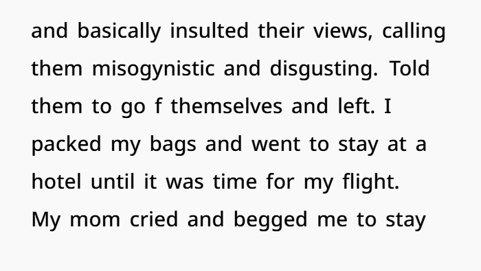 Some people might say that’s harsh. But let’s consider her perspective. Her parents didn’t just disagree with her life choices — they tried to override them. In doing so, they showed disrespect for her identity, values, and most intimate relationships.