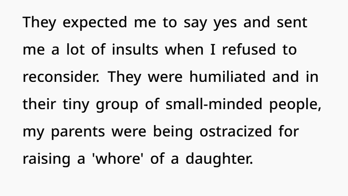 The fallout has been dramatic. Her parents are begging, her extended family says she was too rude, and now she’s questioning if she went too far. But there’s a deeper story here about cultural expectations, boundaries, and choosing autonomy over tradition. This situation highlights how forced proposals and family pressure can cause emotional damage, and how one person’s reaction — however sharp — can be a response to deep disrespect rather than just rudeness.