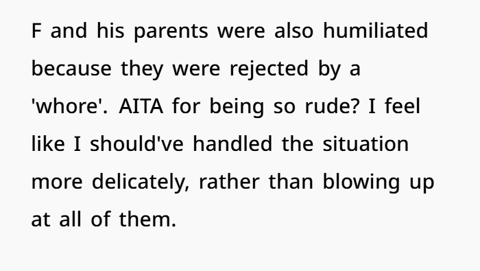 Yes, OP did use harsh words. She called the man, his parents, and her own “low‑lifes” and dropped some strong insults. But let’s unpack that with some real talk.