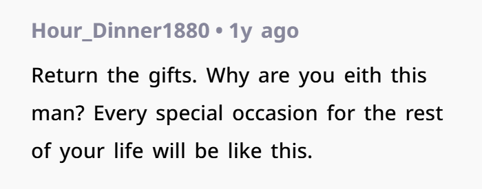 Readers were appalled by the man’s behavior, and many encouraged the author to hold onto the gifts that she bought