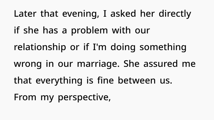 From your description: you’re feeling unsettled, you want to understand why, you want to protect the marriage and your interests — that’s healthy. But this behaviour is a red flag because “fine” no longer means “the same as before.”
