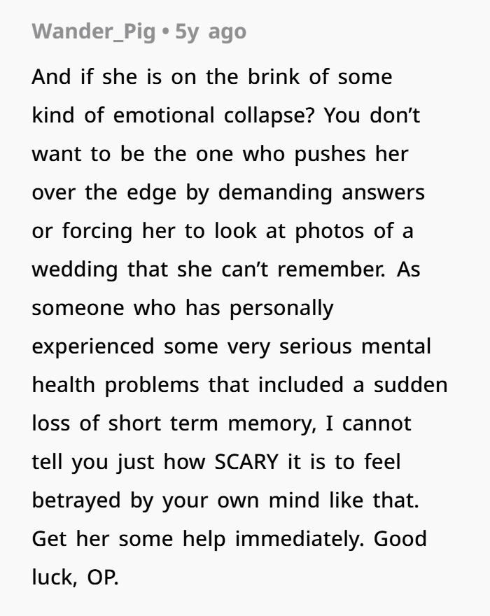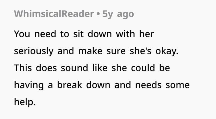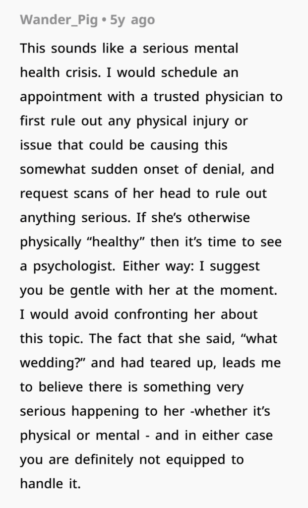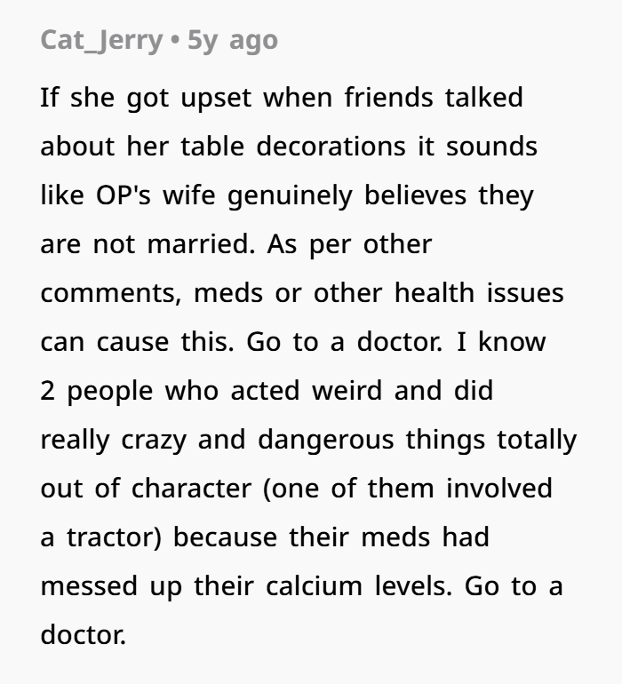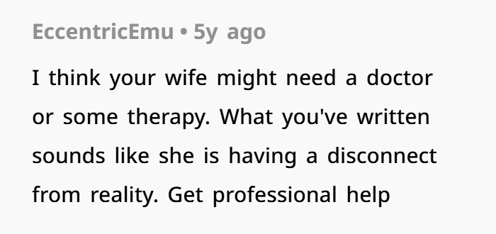 “Sounds like a mental breakdown,” many commenters said, suggesting that the wife was denying reality